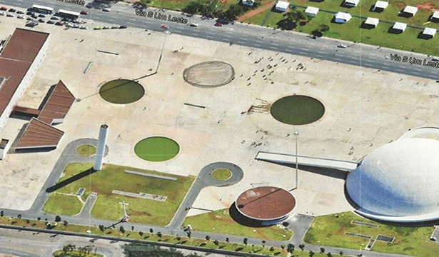 We put a fourth water mirror (a virtual tank with a large diameter) in front of the National Museum, at the Cultural Complex of the Republic. With mobile devices, we transpose the edge (a bit deeper than the central area, to suppress the formation of waves) and dipping our feet in the sound of the waters that become audible as we walk.
