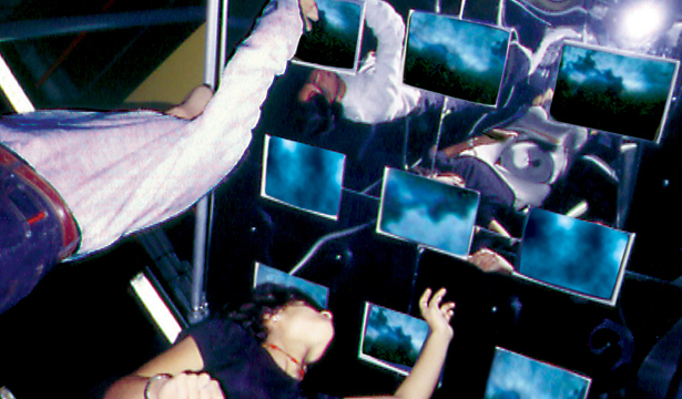The participants will be moving around in the device, with their own touches they will be interrupting and modifying the sequences of sounds and images. Effectively, the visitor enters and modifies the inner space. The animation will become fragmented by the participant, who is who adds "unpredictable" rhythm to the device, incorporating the presence of the participants in what concerns rhythm and space.