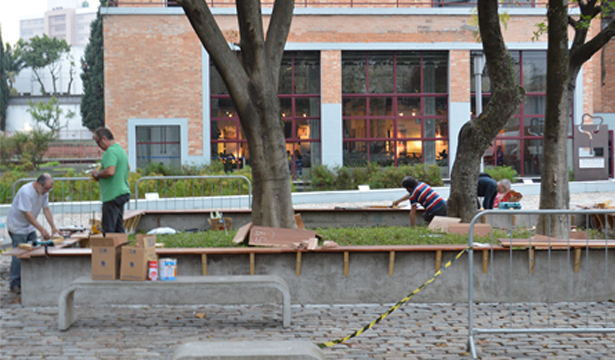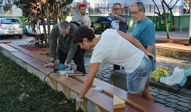 "Mirante 50" is an interactive installation that alludes to the 50 inches of dirt deposited throughout contaminated area of the square. When walking on small wooden deck built over the site of four trees located in the cobblestone plaza area in front of the old incinerator, we feel the relationship between suspension, (im) balance and inaccessibility.
