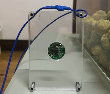 While entering, at the side of the circuit printed on the wall the visitor will have access to a sensor-necklace equipped with beacon (small device that emits Bluetooth signal), which will capture part of his/her tour, to be pointed out to the other visitors in a map shown at the exhibition exit, as mark of their presence and circulation.