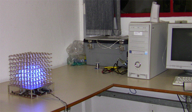 Pedralumen is a project of contemplation, and the public in direct contact with the piece, does not have a way to interact locally with the project. At the location, only the LED cube is found (and the computer connected to the internet and to the piece, but without the keyboard, mouse or monitor for public access). It is a project of reflection on the interaction and sharing with one another, you can see the intervention of another, locally distant for that piece, but not that of your own action at that moment.