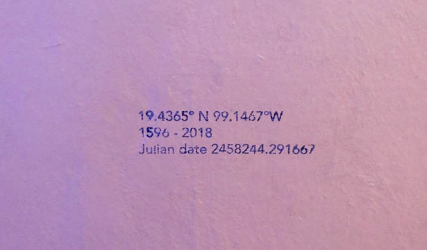 Circuito celeste: los tiempos del cielo y de la oscuridad (Sky circuit) and Time ruler (1596 – 2018) - date Julian: 2458283,513889 (2018)