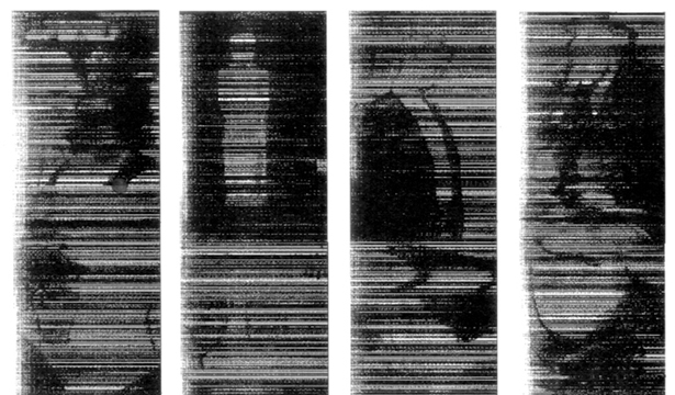 Graças a composição dos movimentos de leitura entre o scanner (numérico) e a varredura da imagem televisiva (analógica), obtinha-se uma imagem decomposta, embaralhada, de aspecto enigmático.